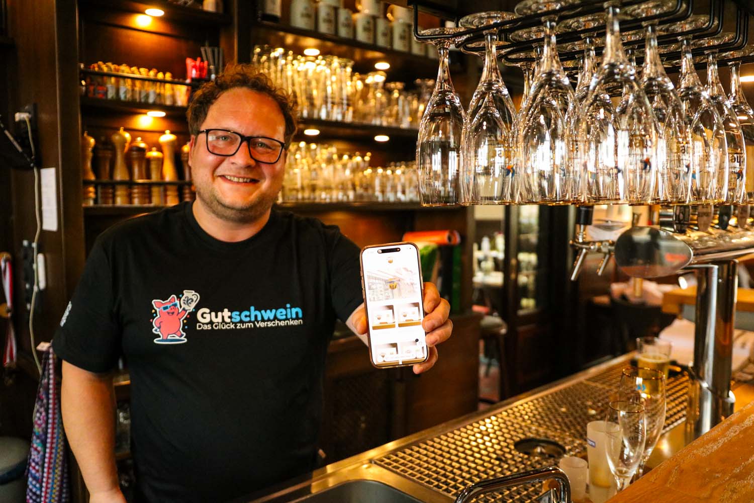 Kurzes Formular ausfüllen, Wunsch-Subdomain angeben (deinname.gutschwein.shop), Logo/Farben hochladen, Beträge wählen.